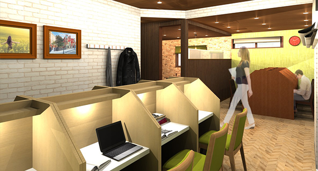 スタッフもカフェで勉強しています。いつでも連絡がつきます。